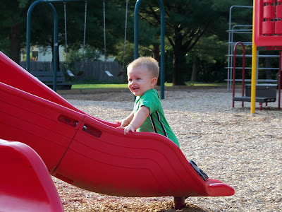 Bryce still loves being outdoors. We recently discovered a new playground near our house and went to test it out this night. Bryce had a great time...he still likes to try to climb up the slides instead of sliding down them :)